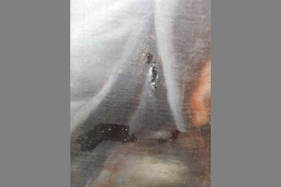 1 Voor restauratie verfafschilferingen tot op het doek